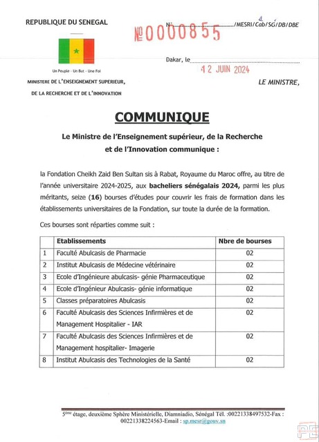 Mots Clés : La Fondation Cheikh Zaid Ben Sultan offre 16 bourses aux meilleurs bacheliers sénégalais 2024 pour étudier dans ses établissements au Maroc, Bourses d'études, Bacheliers sénégalais, Fondation Cheikh Zaid Ben Sultan, Établissements universitaires marocains, Formation supérieure.