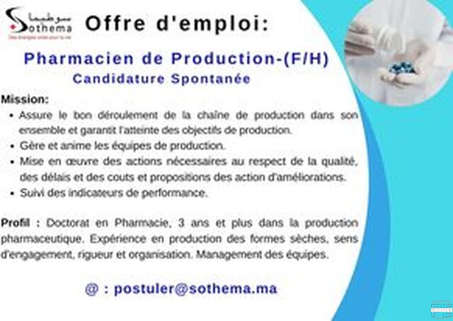Lien : postuler@sothema.ma.