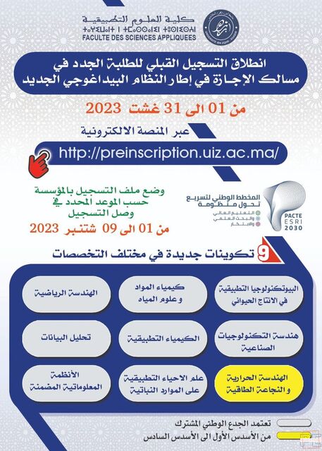 جامعة إبن زهر، تارودانت - إعلان عن التسجيل القبلي للطلبة الجدد حاملي باكلوريا 2023 في مسالك