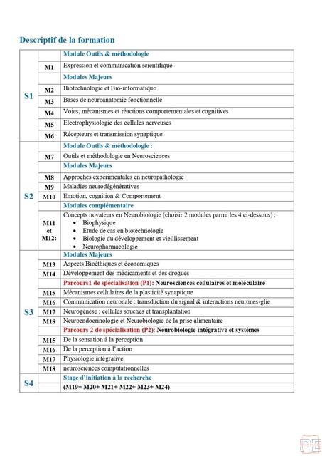 - Connaissances de base en neurophysiologie, biologie cellulaire, biomoléculaire et de niveau anglais avancé (cours dispensés en anglais)